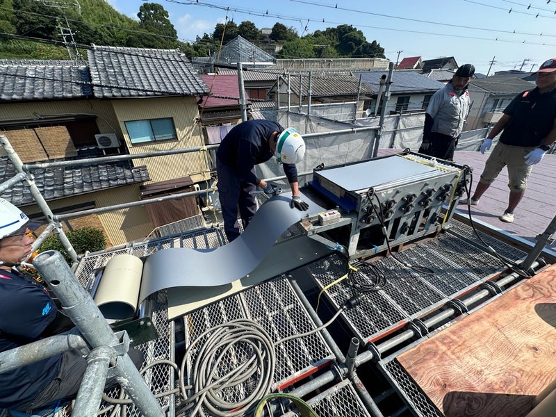 だいたい30分程で板金の成型が完了しました。これを屋根に施工していきます。