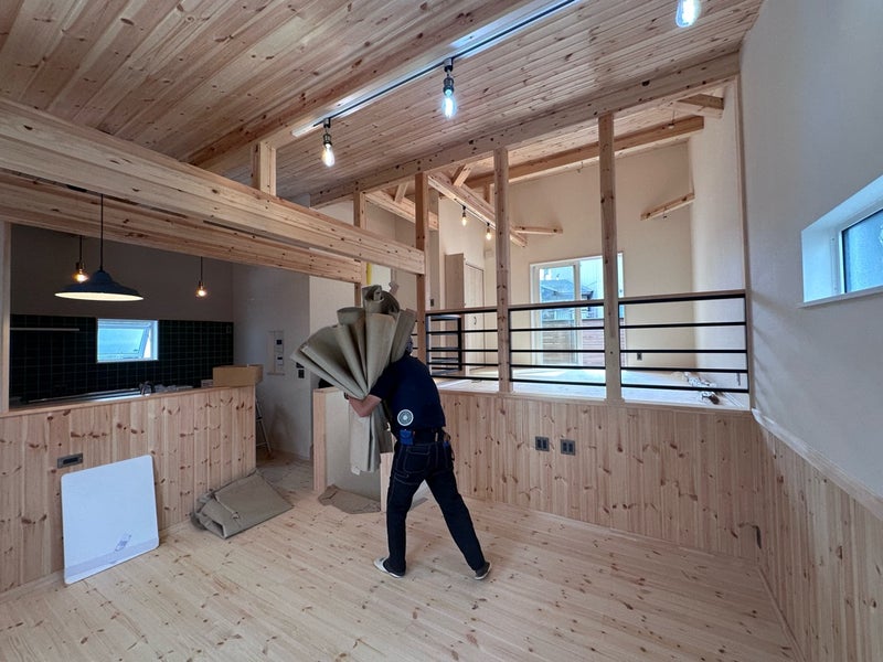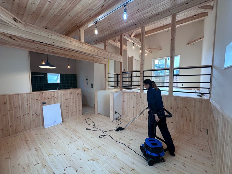 床の掃除機がけから各部の水拭きまで丁寧に作業してもらっています。来週には完了検査を行います。第三者機関の完成検査と社内検査も実施してトリプルチェックをするのでご安心ください!