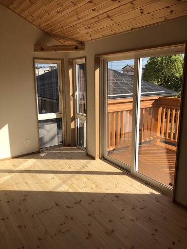 一面に広がる無垢の床板が更に部屋の空間を広く明るくしてくれます。