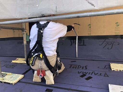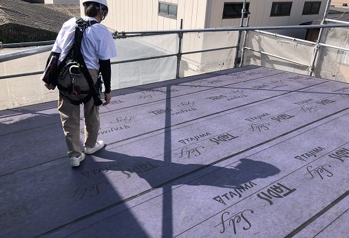 上棟後、工事は順調に進んでいます。屋根ルーフィングの施工が完了したので早速第三者の屋根防水監査を受けました。