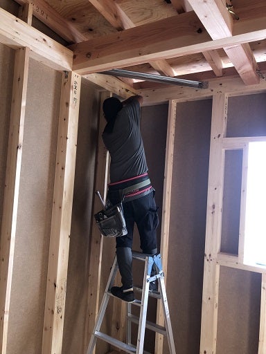 棟梁は外部の耐力面材の施工を終え、構造用金物の取付を進めています。