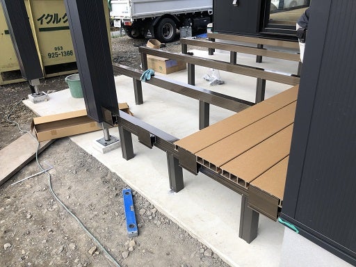 内部の器具取付工事も終了し外部は配管工事及びウッドデッキ作成工事に取り掛かりました。