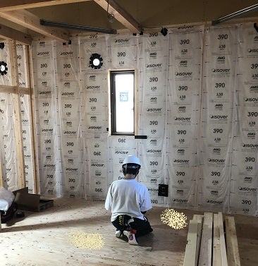 断熱材の充填工事は特に施工精度が重要になってきます。何重にも確認し確実に工事を進めていきます。