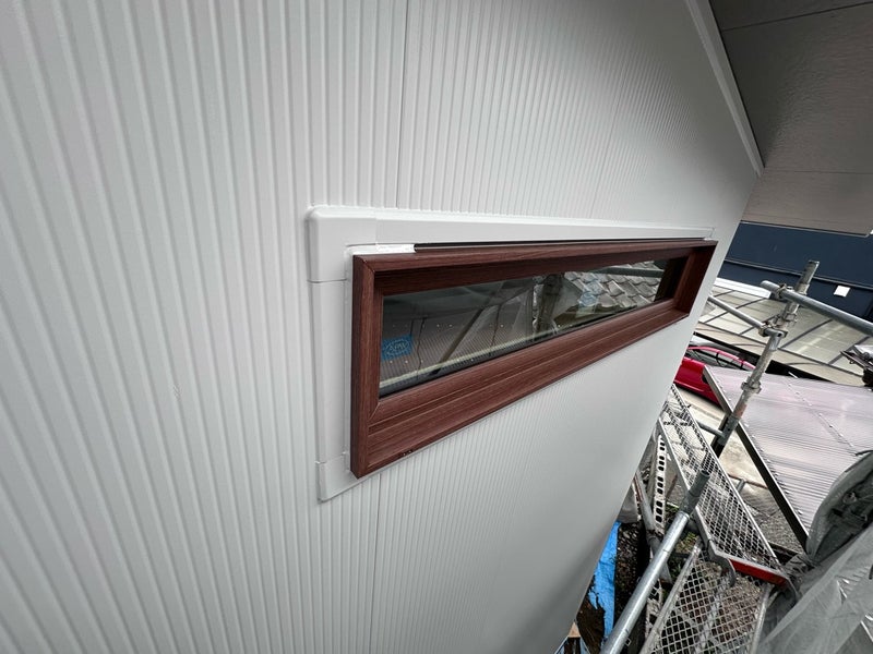 外部は窓周りや外壁の取り合い部分のコーキング工事まで完了しました。この後は破風の化粧板金の取り付け、太陽光パネルの配線などを進めていきます。足場が外れるまでもう少しです。楽しみにしていてください。
