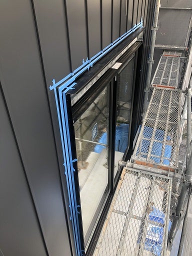 外部では外壁の施工が終了しシーリング工事を進めています。
