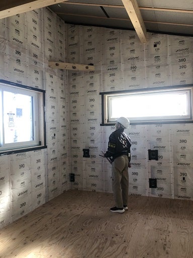 内部も外部も工事は順調に進んでいます。内部では断熱材施工の社内検査に合格し第三者の現場監査を受けました。