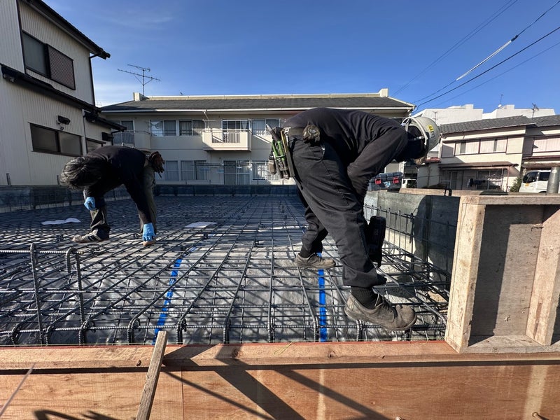 この後はいよいよコンクリートの打設を行なっていきます。普段はスラブと立ち上がりの2回に分けて打設しますが今回は深基礎部、スラブ、立ち上がりの3回に分けての打設となります。基礎の完成が楽しみですね!