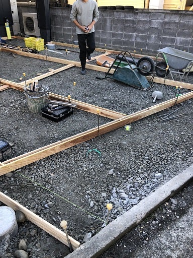 そして昨日コンクリートの打設を進めました。後は車止めや表札、ポストの取付となります。