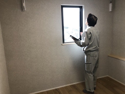 天井、壁、床の仕上がり状態の確認、建具の開閉及び枠の仕上がり状態の確認、窓枠や笠木等の造作材の確認、キッチンや洗面台、トイレ等の設備の確認、玄関・ポーチのタイルの仕上がり状況の確認、基礎仕上げの確認、水切りの仕上がり状況の確認等を行い、建物全般について合格となりました。