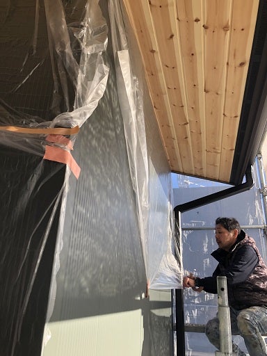 まずは養生から行い塗装範囲及び注意事項を再度打合せをして塗装開始です。
