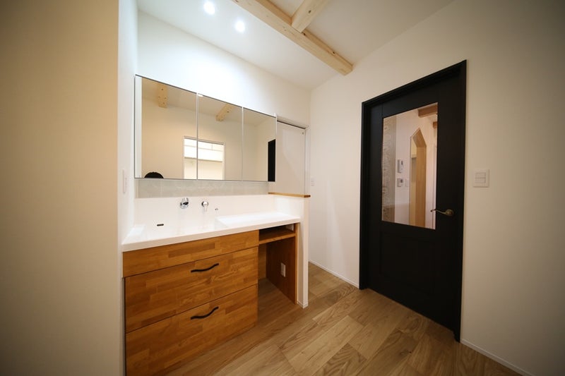 奥様が一生懸命探されてイメージを固められた素敵な造作洗面や