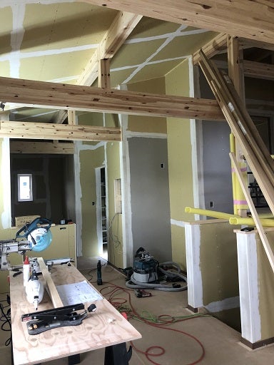 各ニッチや造作家具の制作も進めていきます。そして1階部分より内装工事に取り掛かりました。
