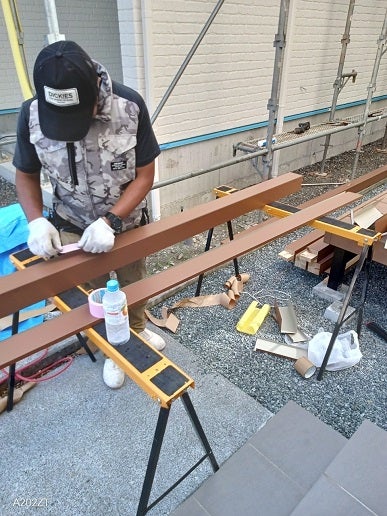 こちらは雨などの水の侵入を防ぐため板金(ガルバリウム鋼板)で巻きます。