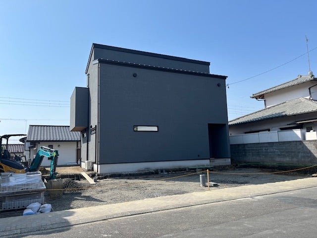 濃いめのグレー色(ジョリパット)のシンプルな外観が、青空にも・街並みにも映えます(#^^#)(外構が完成したら更に映える事でしょう。乞うご期待)