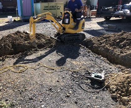 外部では給排水の配管工事を進め、