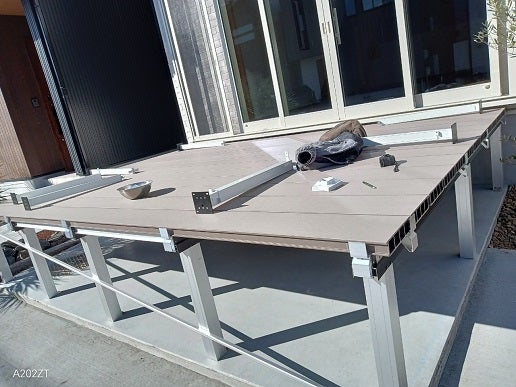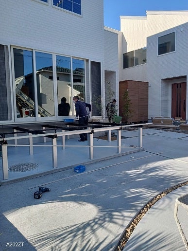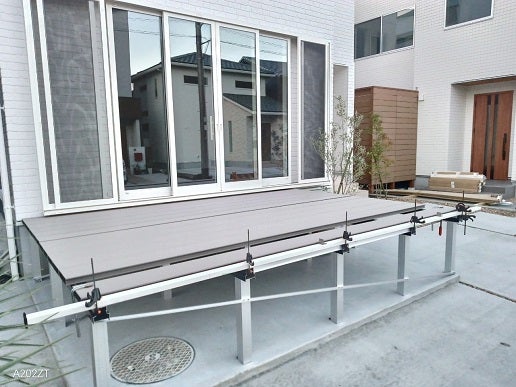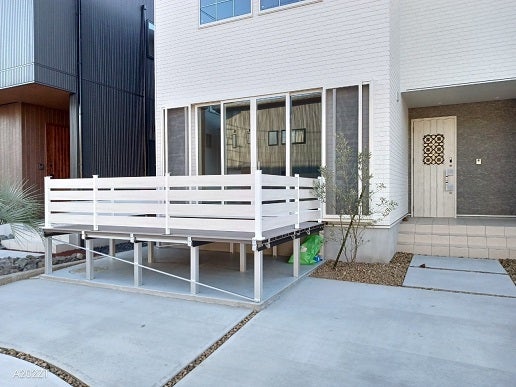 前回のブロブでは駐車場のコンクリート施工まで紹介しましたが、今回はウッドデッキ・フェンス・植栽工事を行いました。「ウッドデッキ」と言っても耐水性や腐食を考慮して樹脂製を使用しました。