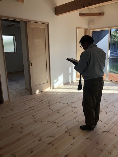 仕上げ材料の確認、火災報知器の確認、24時間換気の確認、図面との相違がないかの確認等をします。