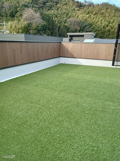 そこで、17号地の屋上もこのFRPの劣化を少しでも守るために人工芝をひいてみました。(^^♪