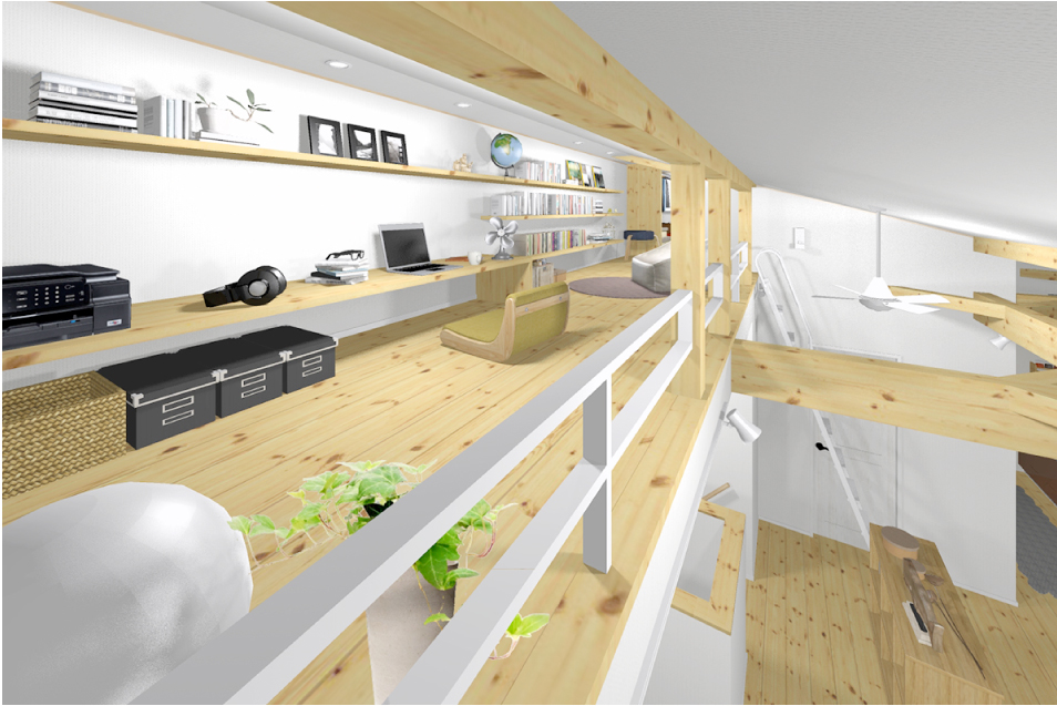 趣味や仕事に集中できる小屋裏スペース、のびのび体を動かせる土間空間、家族がゆったり団欒できるLDK&バルコニー。たった25坪だけど、毎日をとことん楽しめる仕掛けがいっぱいです。