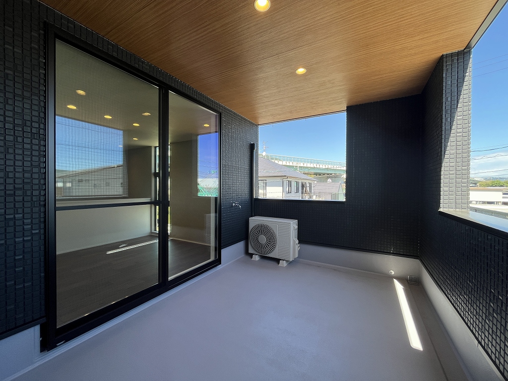 夢が広がる広々バルコニーは色々な用途に使っていただけるように屋根付きに。さらにセカンドリビングにつながっているから、家の中とバルコニーがつながった空間としての楽しみ方も♪