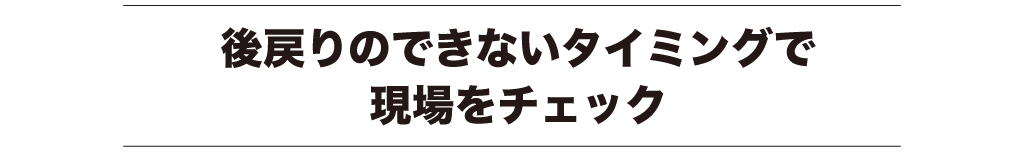 現場管理で一番大切な役割は、これ以上工事を進めてしまうと手直しできない主要なタイミングでしっかりチェックすることなのです。