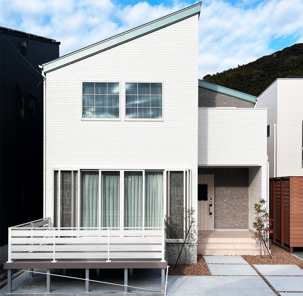 ブルーワンの新ブランドGOJOUはプライベートを確保しながらも空やバルコニーを楽しめる光の射す家。ガレージ付きの家としても車好き、自分だけの世界を楽しめる家です。