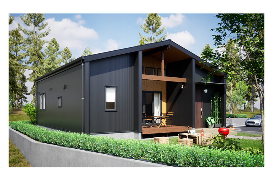 大きな切妻屋根が特徴の平屋です。リビングを中心とした生活動線のくらしやすさに、非日常感のあるロフト空間をプラスしました。
