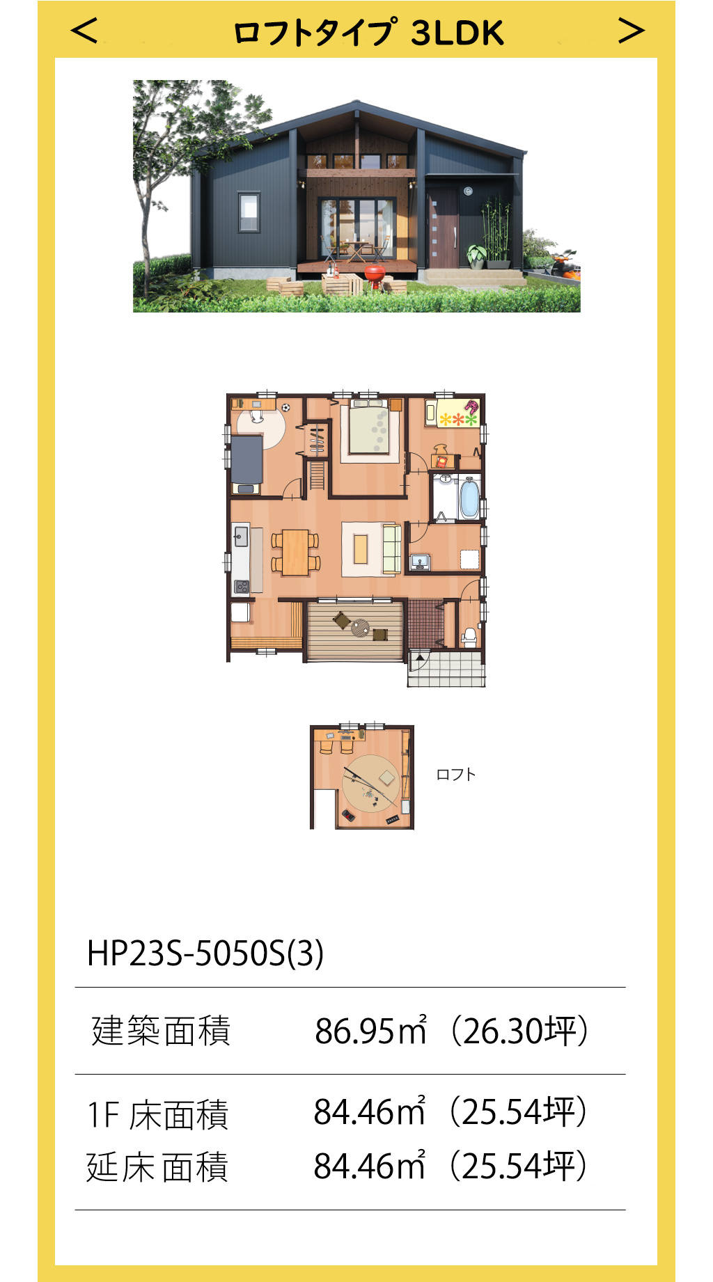 部屋数と隠れ家を重視した3LDK+ロフトタイプ