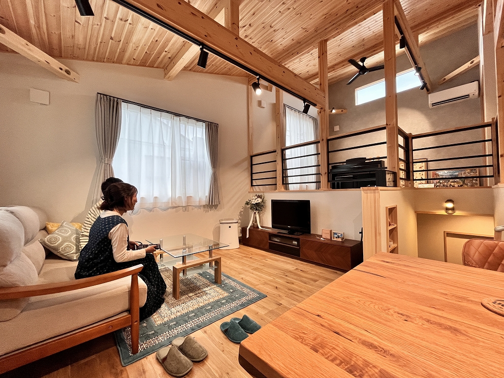 A.:引越ししてから家族や友人が家へ遊びに来てくれました。玄関に入った瞬間の木の香りやスキップフロアの間取りに驚かれたり、私達のお気に入りであるバーンドアや洗面所、アウトドアストッカーについてもたくさん褒めてもらい、嬉しい気持ちになりました。